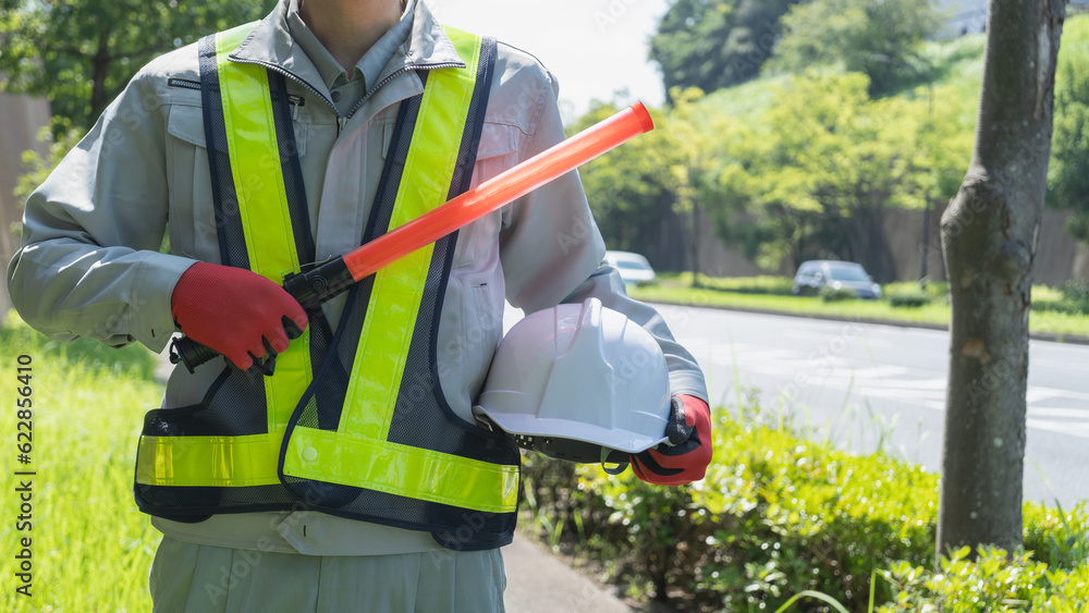 安全ベストを着た作業服姿の男性|建設業・警備員・ガードマン イメージ