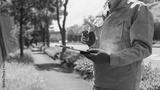 道路に立つ作業服の男性|建設業イメージ