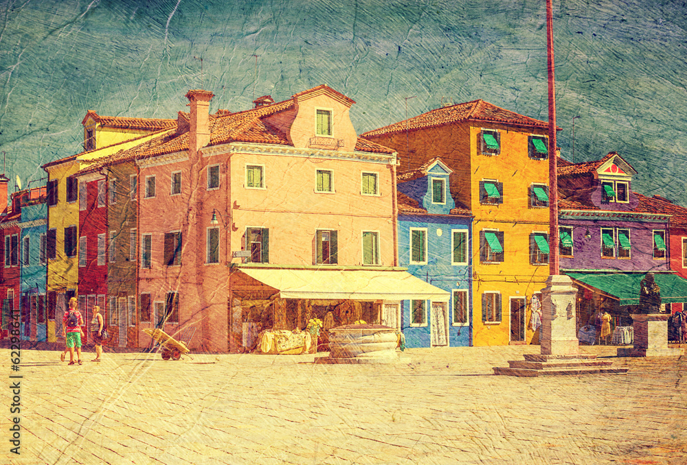 Burano island. Venice. Italy. Picture in artistic retro style.
