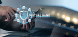 Virtual banking or business financial and cybersecurity concept, global network security technology, business people protect personal information, encryption with a padlock icons on virtual interface.