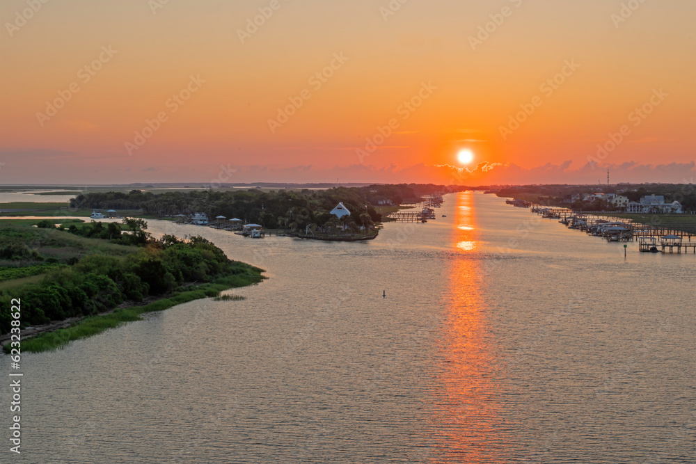 Sunrise over the Atlantic Intercoastal Waterway, which runs between Mount Pleasant and Isle of Palms, South Carolina, USA.