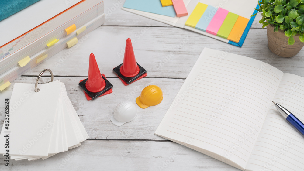ヘルメットと勉強道具|建設系の資格取得 イメージ