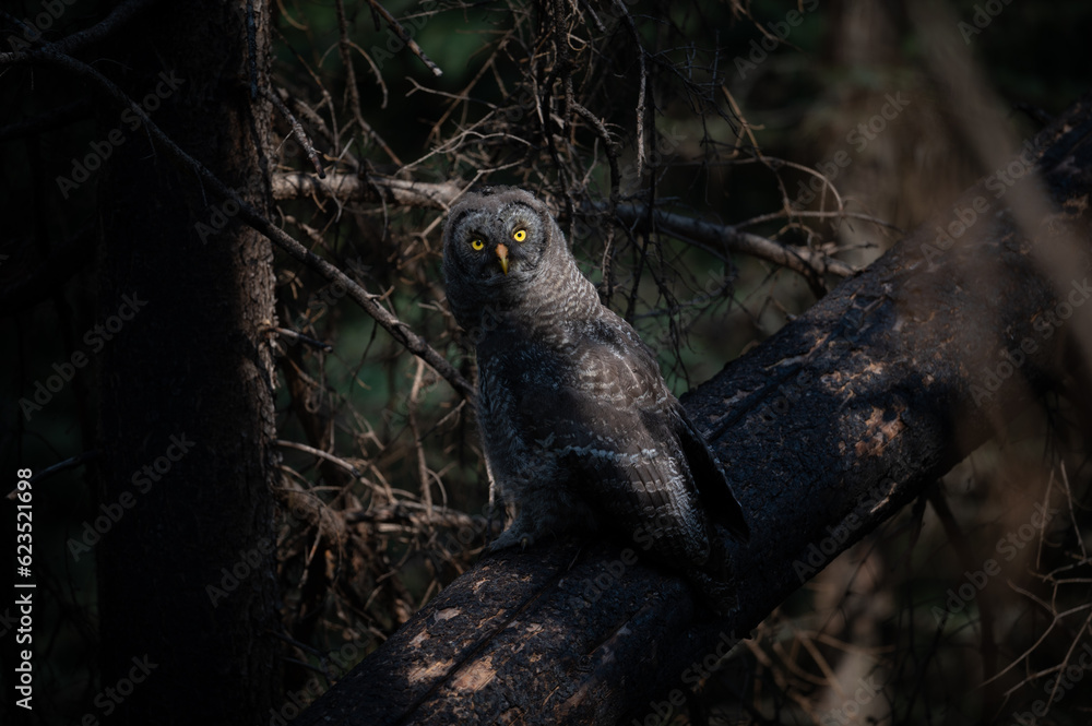 Great Grey Owlets located in the boreal forest of British Columbia.