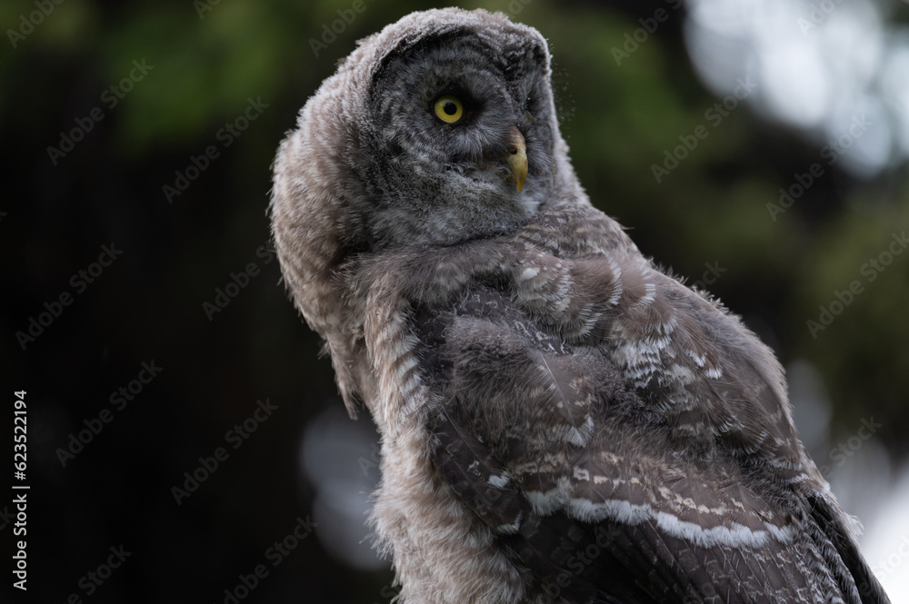 Great Grey Owlets located in the boreal forest of British Columbia.