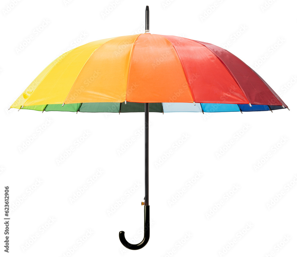Rainbow color umbrella isolated on white background, Rainbow umbrella on White Background With clipping path.