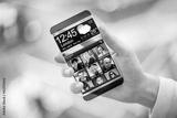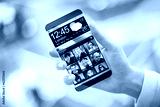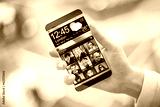 Smartphone with transparent screen in human hands.
