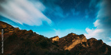 Mtskheta, Georgia. Autumn Night Starry Sky With Glowing Stars Above Limestone Canyon Near Monastic Shio-Mgvime Monastery Shiomgvime.