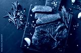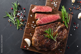 Cooked Beef Steak, Beef Organic Meat, Dark Black Background