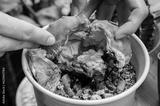 Farmer hands checking dead Astrophytum Myriostigma cactus caused of rotten.