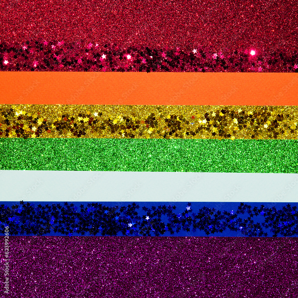 Abstract paper gradient background in bright colors. LGBT color festive background with shiny particles, rainbow colorful photo for bright design. Gay lesbian transgender background