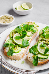 Avocado Toasts, Healthy Snack or Breakfast on Bright Background