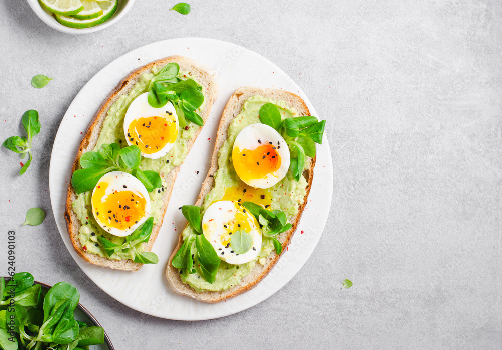 Avocado Egg Toast, Healthy Snack or Breakfast on Bright Background