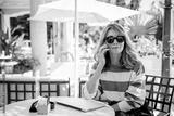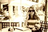 Shot of smiling middle aged woman having a call while sitting at outdoor cafe
