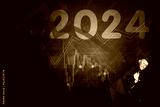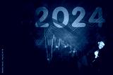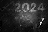 Scared businessman holding a briefcase attacked by arrow over 2024 new year numbers