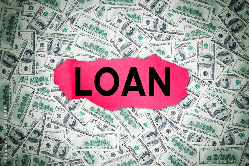 Background of US dollar bills with the word LOAN. Top view point. financial concept