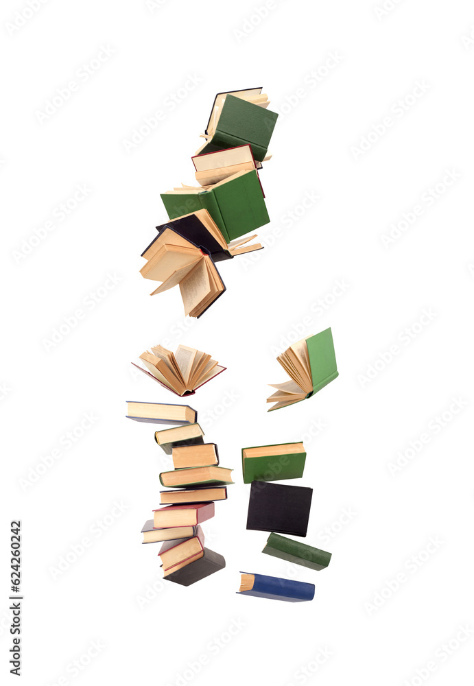 books in flight on a white background