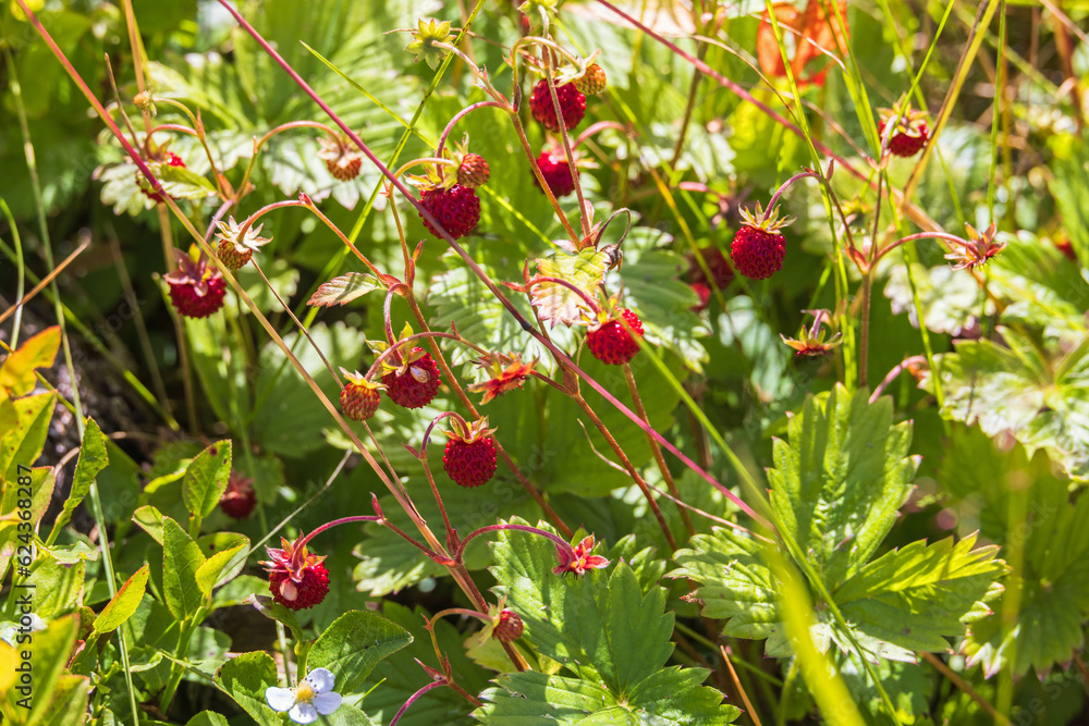 Wild strawberry on a sunny meadow
