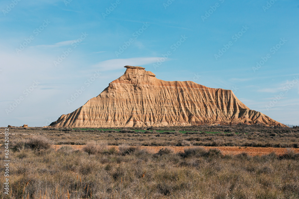 the desert of the Bardenas Reales in the Spanish province of NavarreBardenas Reales. Journey to the warm Spanish autumn. Semi-desert area in the Spanish province of Navarra.