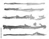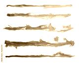 Grunge Gold ink color smear brush stroke stain line blot on white background.