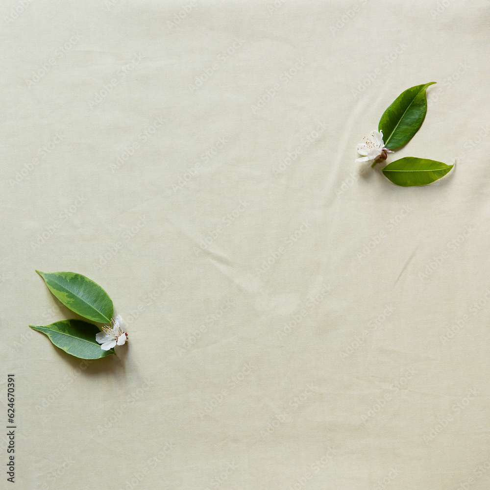 Happy mother's day, birthday, wedding composition. Blank greeting card, invitation and envelope mockup. Rectangular blank with fresh green leaves. Flat lay, top view. Square.