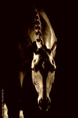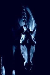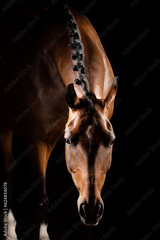 Portrait of dressage horse lowering head