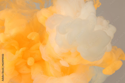 Abstract smoke background. Ink colors blot in water. Yellow, white, beige tone.