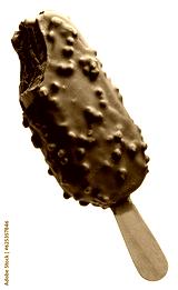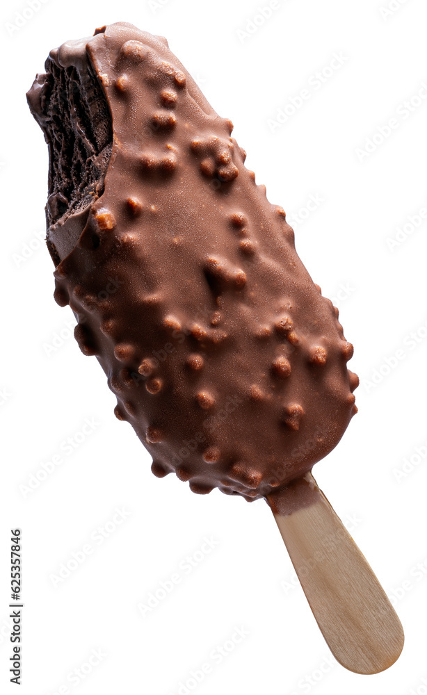 Chocolate and Almond ice cream isolated on white background, Thick Cracking Chocolate and Almond ice cream on white With clipping path.