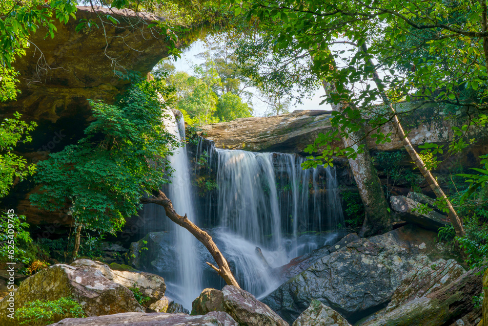 Waterfall at Phu Kradueng national park, Loei Thailand, beautiful landscape of waterfalls in rainforest
