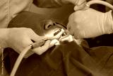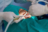doctor cleaning the teeth patient with ultrasonic tool