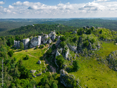 Aerial view of rock formations in the Krakow-Czestochowa Jura. Poland.