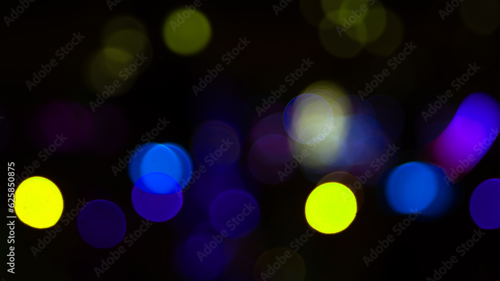 background blurred abstraction of colored lanterns and decorations. bokeh texture of street colored lights