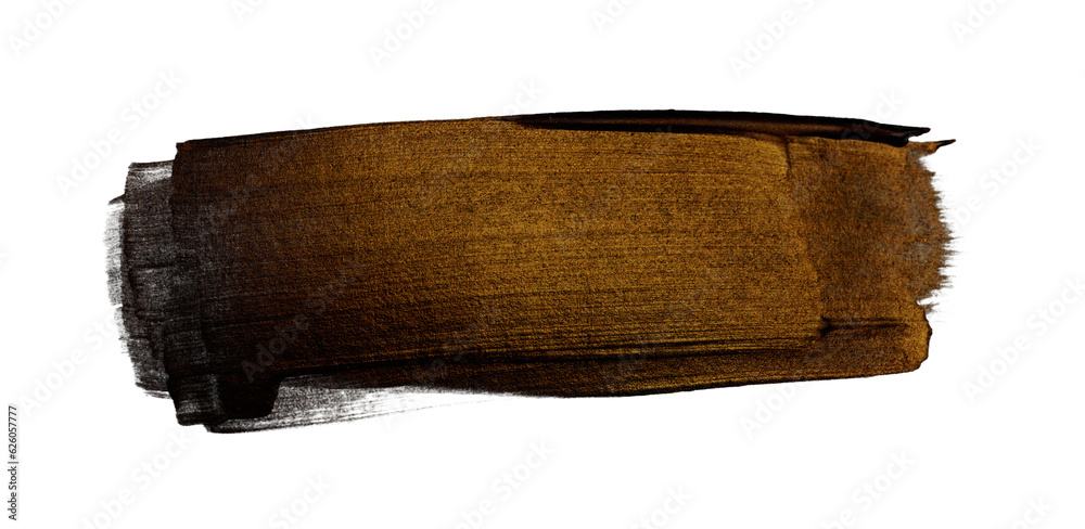 Bronze glittering color smear brush stroke stain blot on white background. Abstract Painting texture.