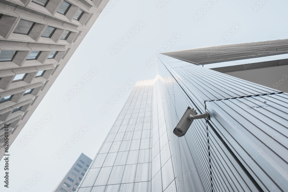 Outdoor CCTV video surveillance security camera installed on the building in the city