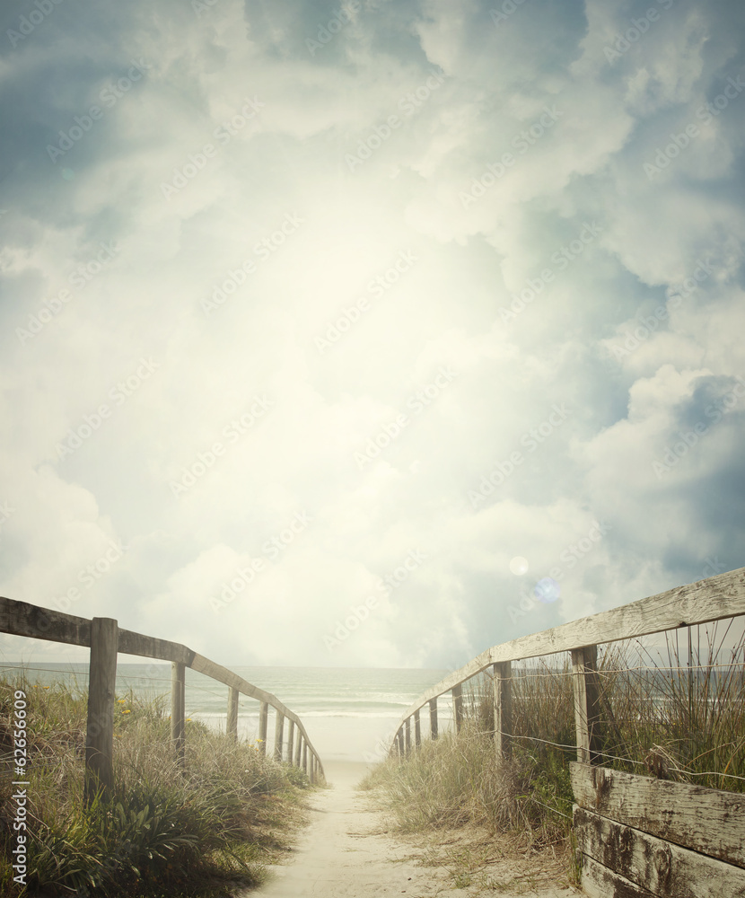 Walkway in sand to beach.