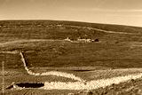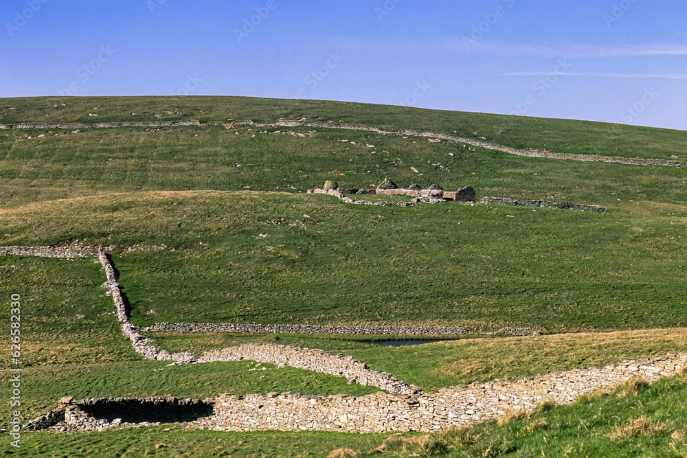 Beautiful rural landscape view with stone walls on a moor