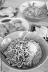 Northern Thai food (Khao Soi), Spicy curry noodles soup with chicken, Local Thai food