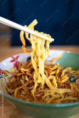 Northern Thai food (Khao Soi), Spicy curry noodles soup with chicken, Local Thai food