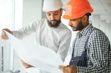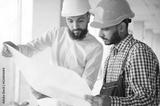 Happy workers at construction site, young civil engineer manager and architects. Indian and Arabian engineers.