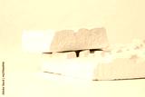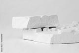 White stones platform podium on beige light copy spase background. Minimal empty display product presentation scene.