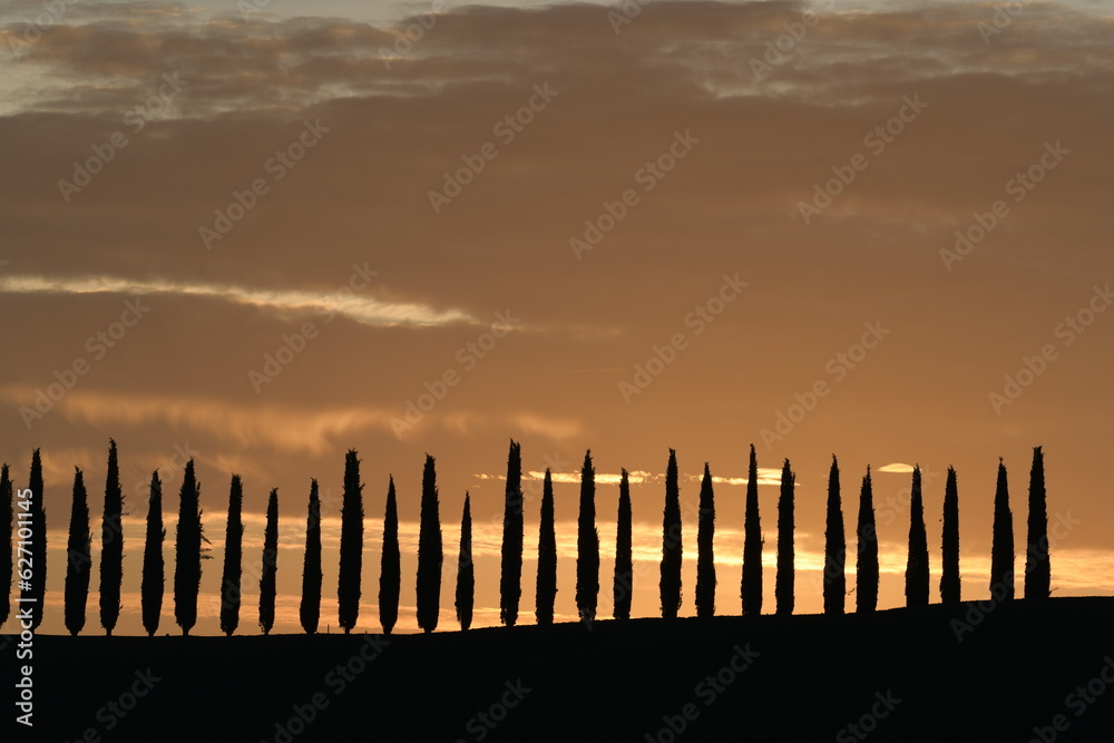 cypress silhouette of the sunset