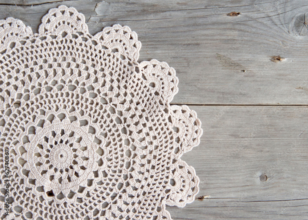 Crochet doily over old grey wood