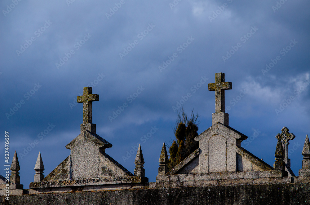 graves with crosses on top of them in a catholic cemetery