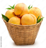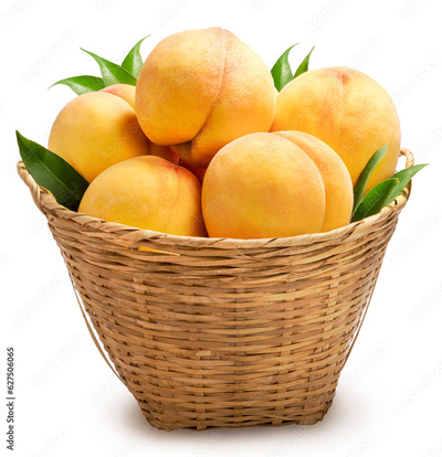 Fresh Yellow Peach in basket isolated on white background, Yellow Peach fruits on white With work path.