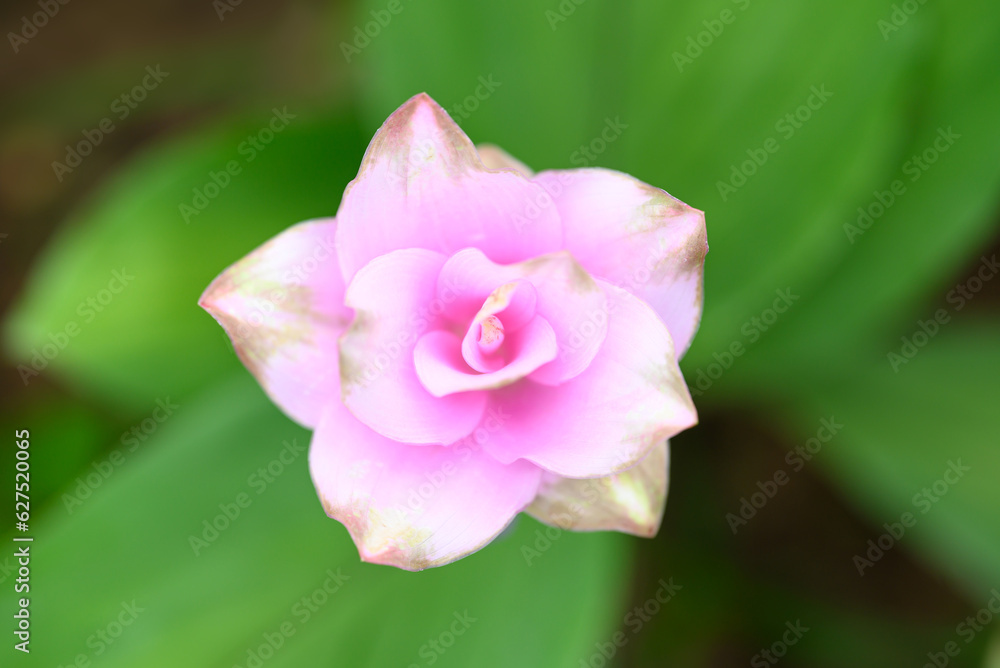 Pink Curcuma alismatifolia flower or Siam tulip blooming in rainy season, Thailand