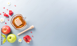 Rosh hashanah (Jewish New Year holiday), Concept of traditional or religion symbols on pastel background.