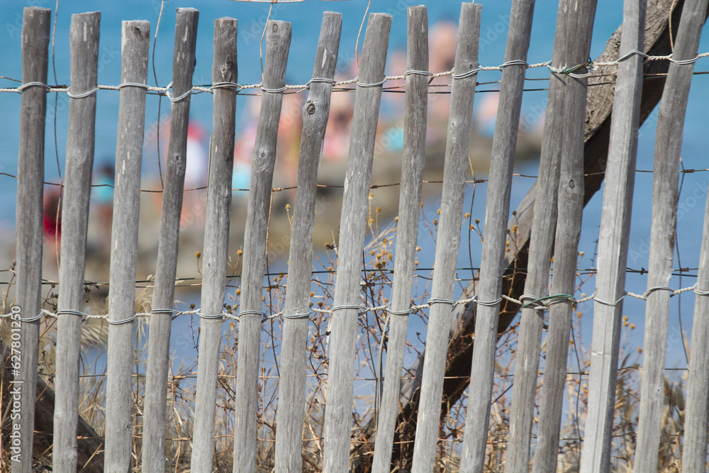 Sand fence to avoid erosion in Calvi Corsica at the mediterranean sea