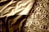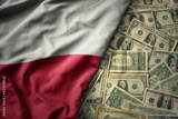 colorful waving national flag of poland on a american dollar money background. finance concept