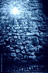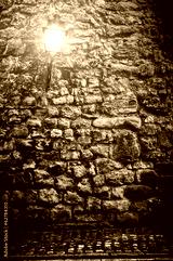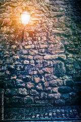 Old stone wall with lantern