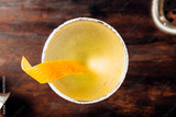 Yellow Sidecar Cocktail booze brandy, triple sec liqueur and fresh lemon juice with a Sugar Rim