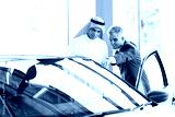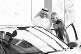 senior dealer pointing car features